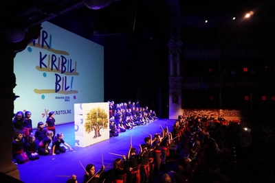 Jarraian, Kirikiño Ikastolako 50 bat umek "Aldapeko" abestia kantatu dute eta zuhaitz erraldoi bat eraiki dute oholtza gainean, arbolak fruituak eman dituela eta euskara Bilboko kaleetara zabaldu dela irudikatuz. Ikasle txikienak ere protagonista izan dira eta Ibilaldirako propio Ikastolan sortutako Kirikiñoaren ipuina kontatu dute, Ebaristo Bustintza “Kirikiño” maisuaren izena baitarama Ikastolak.